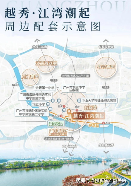 商业设施:项目自身配建了约3.4万平方米的商业Mall,计划引入奢侈品旗舰店、五星级酒店及商务办公等多种业态。此外,广百海港城已于2023年底封顶,预计今年底正式开业,将成为广州首个大型滨江海港城。