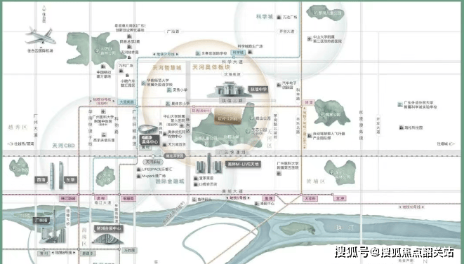 楼型48°设计,形成极致景观视野,目之所及皆风景;双轴景观中轴,一轴历史人文生活轴线,一轴珠江新城CBD与黄埔新城磅礴天际线,一览无余。
