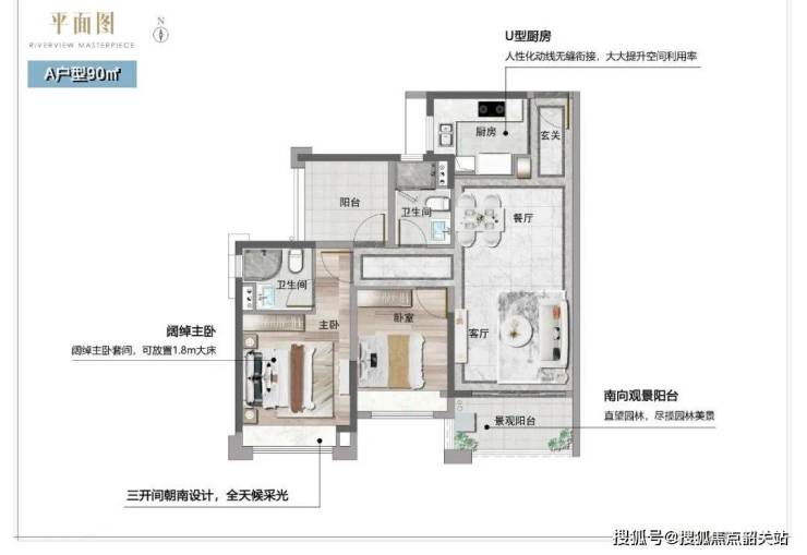 亮点:三开间一线朝南,采光通风俱佳;套房设计的主卧,让生活更从容自在。