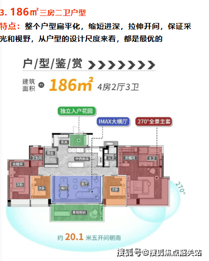 解答:万科臻山府的户型设计主打高使用率和舒适度,面积段涵盖一百一十至一百八十六平方米。所有户型均采用大面宽、短进深的设计,确保充足的采光和通风。例如,一百一十平方米户型拥有三点七米超大开间和三开间朝南;一百三十四平方米户型采用LDK一体化设计,四开间朝南;一百八十六平方米大户型则通过扁平化设计最大化景观视野,大部分单位均可直望白云山美景,体现了豪宅的居住标准。