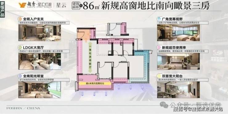 【新规产品 跃级人居丨小面积大空间·超百使用率!】#佛山新规设计高赠送,同等面积乐享更大空间#全户型南北通透、户户朝阳,阳光与风景平权#LDGK一体超宽开间,融汇家人N种幸福生活方式【云舒丨建面约86㎡三房两厅两卫】