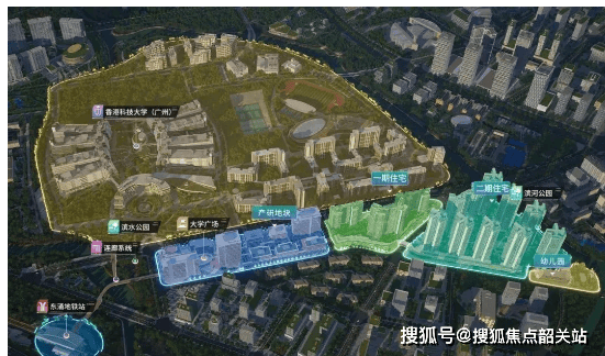 项目紧邻香港科技大学(广州),直线距离仅数百米。该校于2022年9月正式开学,是由教育部批准设立的高水平合作办学机构,全球QS排名稳居TOP34,被誉为“中国高等教育改革试验田”。不同于传统高校,港科大(广州)采用“枢纽+学域”新型学术架构,重点布局人工智能、数据科学、智能制造、可持续能源等前沿领域,每年吸引大量高知人才汇聚于此。