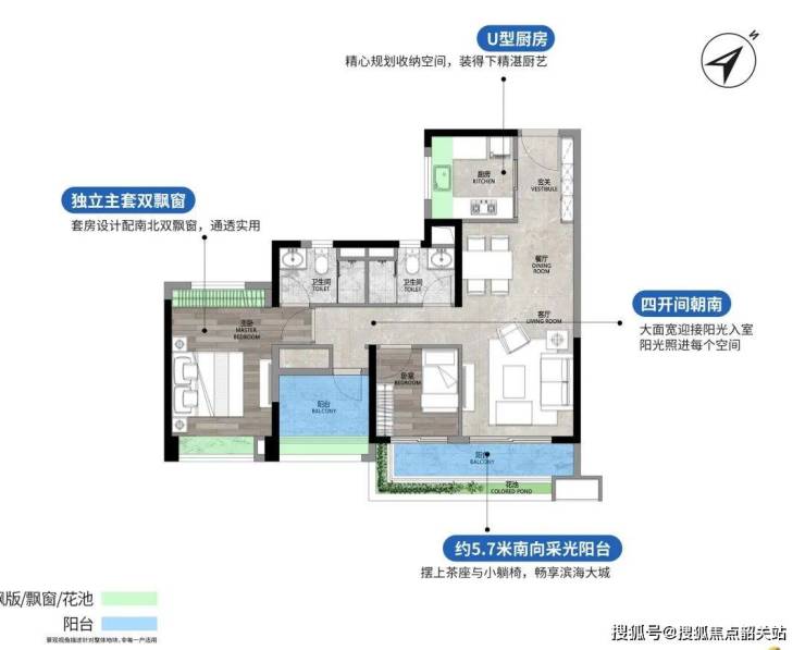 82㎡三房两卫,小户横厅重出江湖,片区内绝版横厅小户强势补货。南北对流,四开间超11米采光,270度超大角度采光,海园双景皆可拥有。