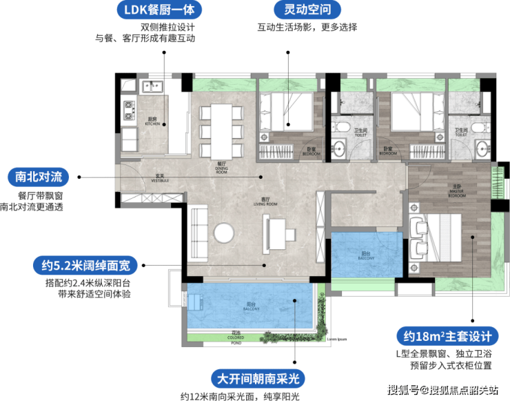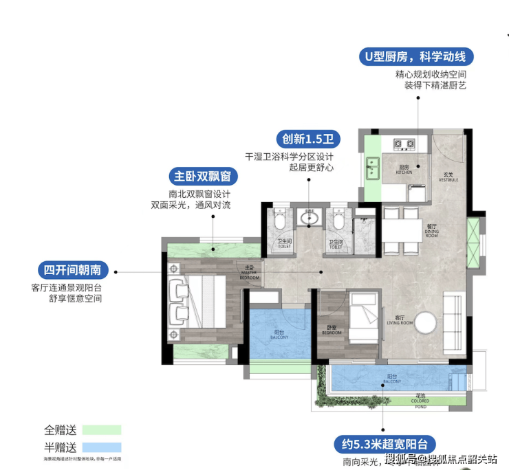78㎡三房两厅两卫,全新升级三房,四开间朝南,超11米南向采光面,270度超大角度采光,直望广阔园景。
