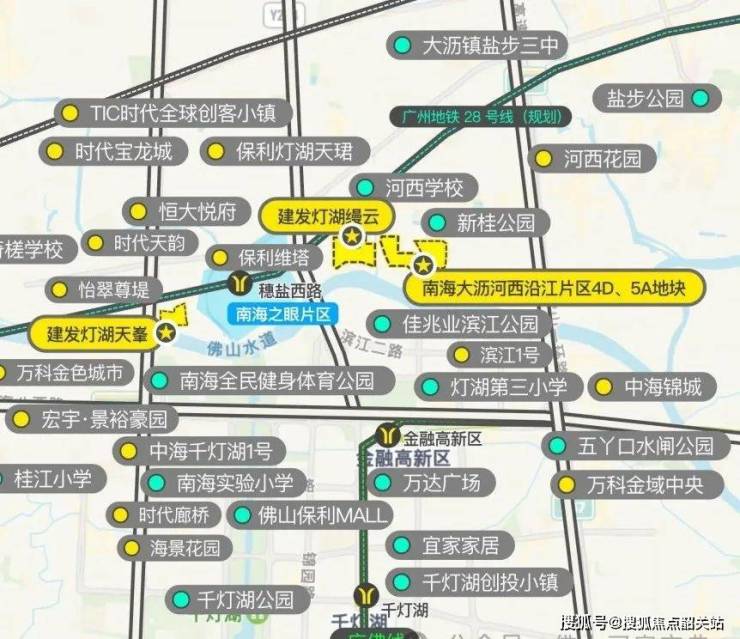 建发·灯湖缦云坐落于佛山市南海区千灯湖核心板块,地理位置极其优越。项目紧邻东平河岸,正对滨江中轴公园,享有不可复制的一线江景资源。周边路网密集,步行仅1.2公里即可抵达地铁28号线奇槎站(建设中),未来可快速通达广州白鹅潭、琶洲等重点区域。同时,佛山6号线穗盐西路站也临近项目,出行便捷高效。此外,项目距离广佛高速、海八路等主干道较近,自驾前往广州主城区亦十分便利,真正实现广佛双城生活的无缝衔接。