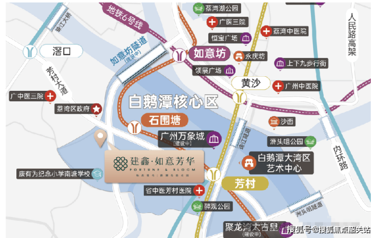 建鑫·如意芳华(推广案名:建鑫鹅谭名郡)坐落于广州荔湾区桥梓大街南侧,正处白鹅潭商务区发展主轴之上。作为广州“西翼”重点打造的城市封面区域,白鹅潭近年来迎来万象城、太古里等重磅商业体落地,城市界面焕然一新。项目距荔湾区政府仅数百米,紧邻芳村大道中,地理优势显著。更关键的是,它并非远郊概念盘,而是真正扎根于老城区成熟生活圈中的稀缺新盘。随着11号线等轨道交通陆续贯通,区域通达性进一步提升,项目所处位置既享老城烟火气,又拥未来增长红利,是当下主城置业不可多得的“确定性资产”。