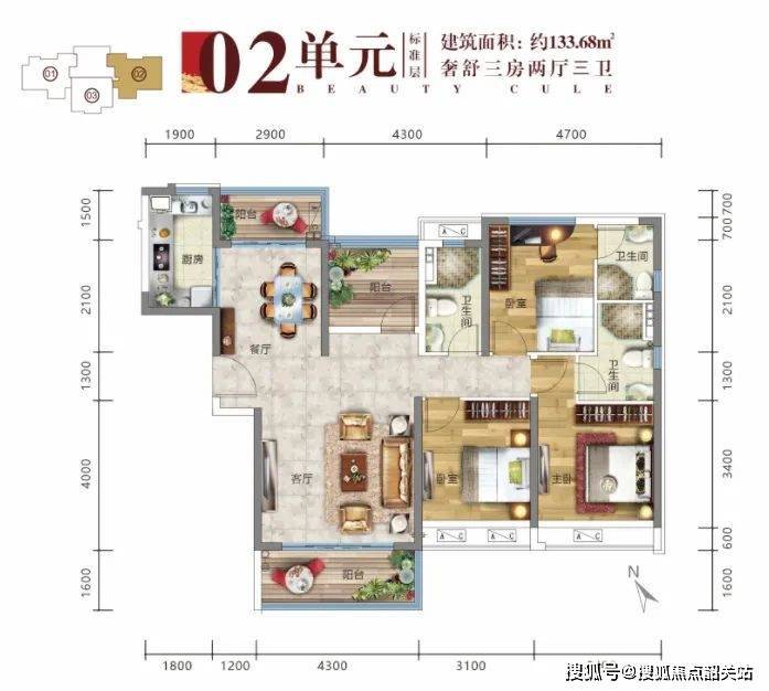 美立方三期主推 115 平三房和 130 平四房,带装修价格约 1.4 - 1.5 万 / 平,与周边一手房报价相近。115 平三房采用飞机户设计,4 米客厅开间,南向无遮挡,厨房连接生活小阳台,实用率较高;两个卧室与客厅均朝南,采光良好。130 平四房虽客餐厅通风对流稍欠,但客厅开间达 4.3 米,主卧、次卧朝南,部分户型总价相对周边竞品有一定优势,能满足部分家庭的居住需求。