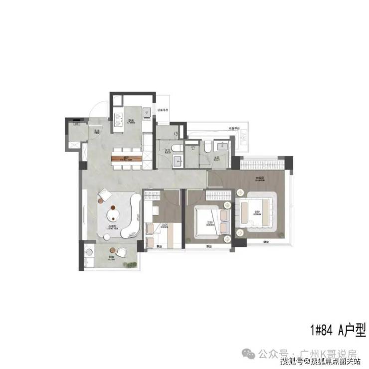 建面84平三房两卫;