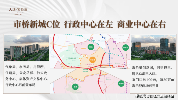 【市桥新城C位】行政中心在左(住建、公安、气象等),商业中心在右。