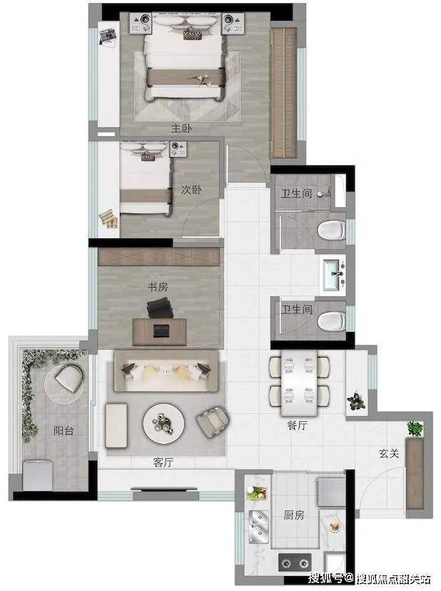 83㎡三房两卫:带主套舒适三房