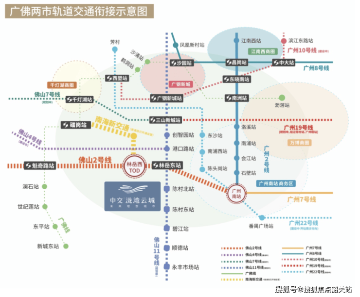 中交泷湾云城地处佛山市南海区三山新城核心区域,地理位置优越,是广佛同城发展的关键节点之一。项目紧邻佛山地铁2号线林岳西站(已通车),且连接南海有轨电车,形成便捷的城市轨道交通网络。从项目出发,两站可达广州南站,五站可到广钢新城,极大提升了项目的通达能力与发展潜力。