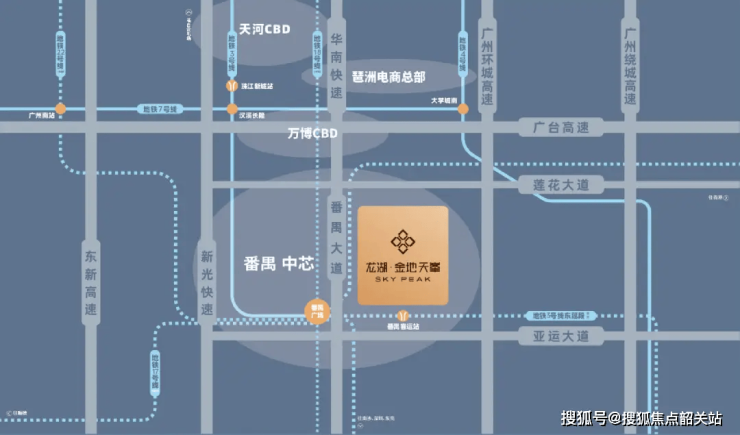 地铁:3号线东延段(番禺广场站,2026年通车)直线距离300米,1站万博、5站珠江新城;