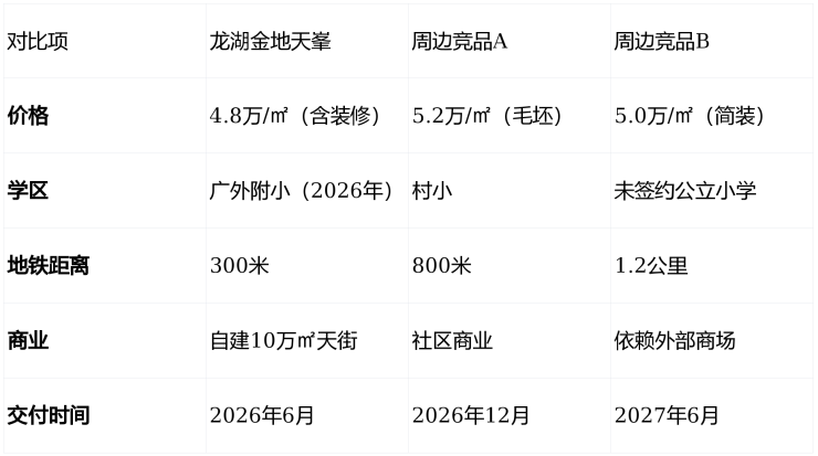 🔍竞品对比:龙湖金地天峯,性价比碾压