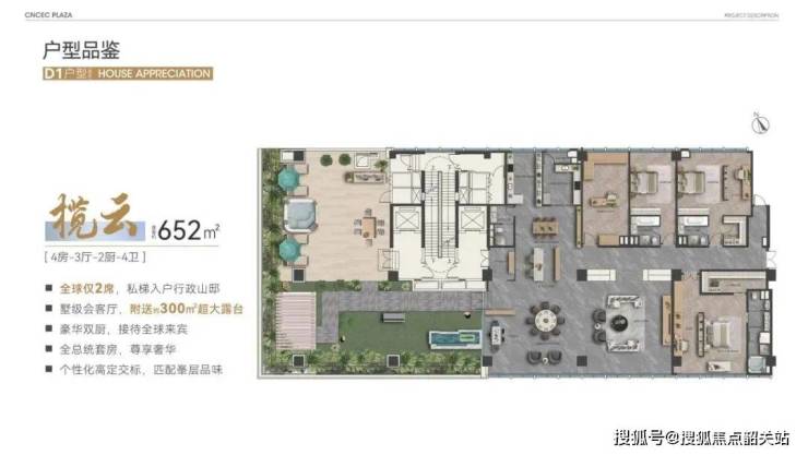 项目还包括一栋总共15层的建筑,共有50户,提供321至652平方米的行政山邸和404至518平方米的5A甲级写字楼。