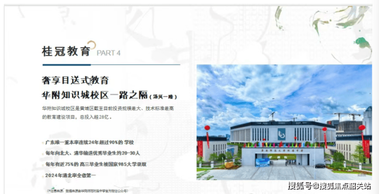 教育是项目核心王牌,华师附知识城校区与项目一路之隔,直线距离仅 100 米,该校是黄埔区投资规模最大、技术标准最高的公办学校,2023 年已正式招生开学,师资力量雄厚、教学设施一流,涵盖小学、初中全学段。初中部采取 “自主招生 + 全区摇号” 模式,项目业主享有优先摇号资格,家门口即可享受顶级公办教育,彻底解决子女上学难题。