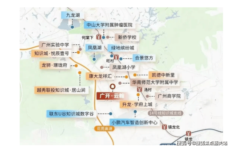 自驾路网:毗邻 ** 创新大道、永九快速(建设中)** 两大城市快速路,15 分钟直达科学城,30 分钟接驳天河 CBD;近邻花莞高速知识城出口,连通广河高速、华南快速、从埔高速(建设中),1 小时畅行湾区各大核心城市,跨城出行高效便捷。