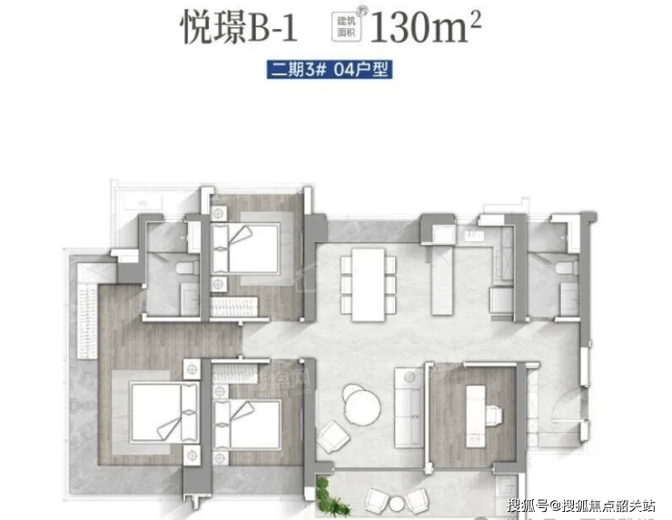 一期悦璟D户型(建筑面积约125㎡),采用LDKG洄游动线设计,动线流畅,提升空间利用率;三南向卧室设计,确保充足的采光与通风,让每一个卧室都明亮舒适;厅卧空间可灵活改造,连接约6.7米阳台,适配全生命周期居住需求,无论是二人世界、三口之家,还是三代同堂,都能轻松适配;半开放式中西厨房设计,满足业主多元化的烹饪需求,多样生活随心而动;玄关大通柜+走廊置物柜的人性化设计,轻松收纳全家兴趣物品,让空间更加整洁有序。