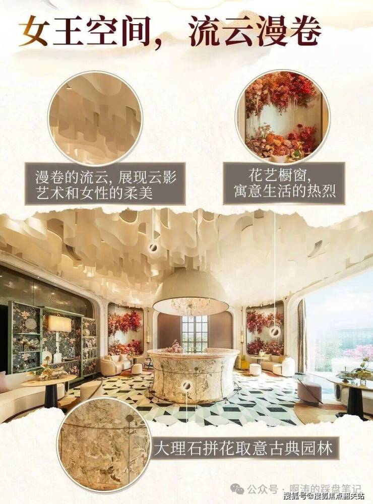 云外书院:借鉴苏州网师园造园逻辑,打造集阅读、学习、社交于一体的社区文化空间,搭配大理石拼花、梵克雅宝与手敲铜艺术壁灯,兼具美感与实用性,是业主阅读、孩子温习功课的理想场所;