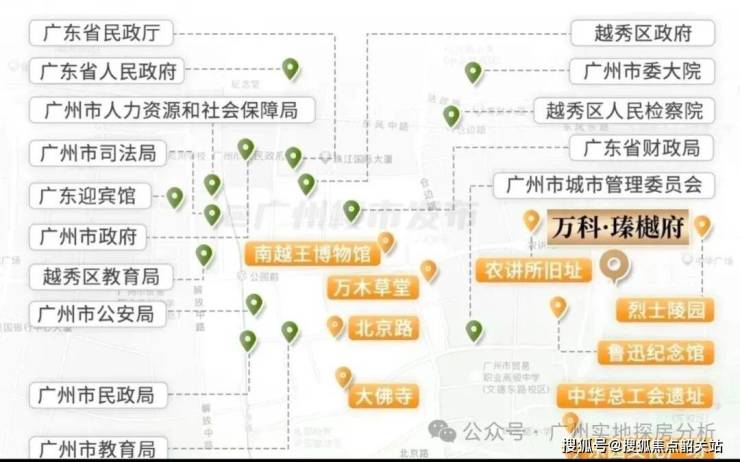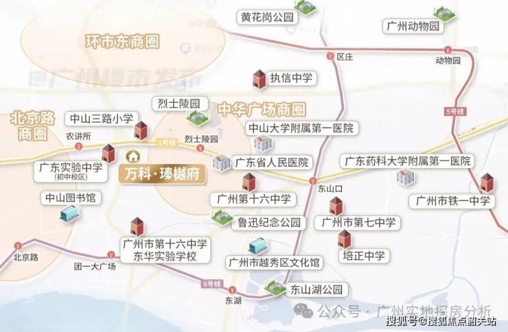 万科瑧樾府地处越秀老城区核心腹地,周边聚集省政府、广州市委、广州市政府等 24 处省级、19 处市级政府机关单位,城市核心资源高度集聚。项目交通配套堪称顶配,距离地铁 1 号线农讲所站约 400 米,地铁 6 号线团一大广场站约 700 米,双地铁覆盖,步行即可轻松抵达。周边东风路、中山路、环市路等主干道环绕,自驾可快速通达城市各区域,出行便捷高效。