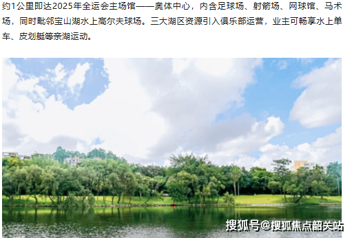 项目打造顶豪圈层专属全维度配套体系,教育、商业、医疗、休闲配套层层落地,兼顾高端质感与日常烟火,适配高净值人群全场景生活需求。教育配套实力拔尖,项目签约天河外国语教育集团学校,在家门口即可享受顶尖公办外语教育资源,小学阶段同步覆盖国内基础教育与外语启蒙教学,教学体系优质多元。五公里教育圈层内集聚五所国际学校、六所中小学、三所中学及四所幼儿园,涵盖贝赛思、爱莎、梅沙黑利伯瑞等全国知名国际学府,公办名校与高端国际教育双向兜底,满足子女多元化教育需求。商业配套主打高端滨湖商业体系,由越秀商管匠心打造,片区内精品咖啡馆已正式运营,高端商务餐饮、精品商业正在火热招商中,逐步形成专属滨湖高端商圈。同时可快速直达金融城山姆会员店、美林天地、优托邦等成熟商圈,日常购物、高端宴请、休闲消费需求一站式满足。医疗配套完备,三公里范围内覆盖广州医科大学附属中医院、黄村医院等基础医疗配套,自驾十余分钟可达中山三院岭南医院,三甲医疗资源为全家人健康保驾护航。休闲配套更是顶配,紧邻2025年全运会奥体中心主场馆,涵盖网球、马术、射箭、足球等多元运动场地,坐拥三大湖区与宝山湖水上高尔夫资源,业主可沉浸式体验皮划艇、水上单车等亲湖运动,高阶休闲场景全覆盖。