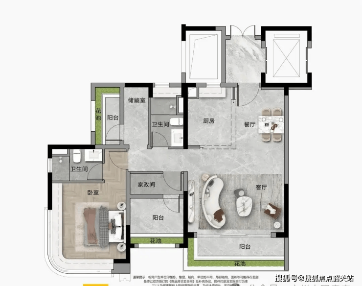 建面约120㎡创意空间:四房优居,阳光生活范本