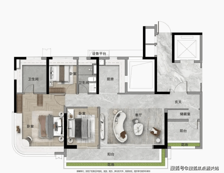 功能分区清晰,主卧套房+双卫设计,满足高端生活需求。
