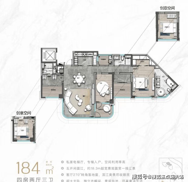 广州滨江天地加推D栋新品,涵盖建面约109㎡至136㎡的三四房户型。此外,楼王产品璇湾壹号面积段为184-255㎡的4至5房,瞰江面最高可达18.3米,拥有最高270°观景面,距离江边约100米。所有住宅均采用环保材料,配置3M净水、新风系统等,符合国际WELL健康建筑标准,并配备如欧洲贵族品牌smeg厨电三件套、高仪卫浴五金等高端交标。