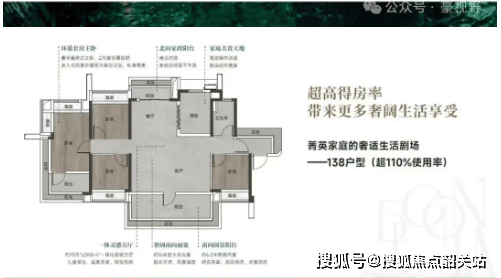使用率极高,110%-130% 的变态级使用率,108㎡堪比竞品 128㎡,空间实用性强。