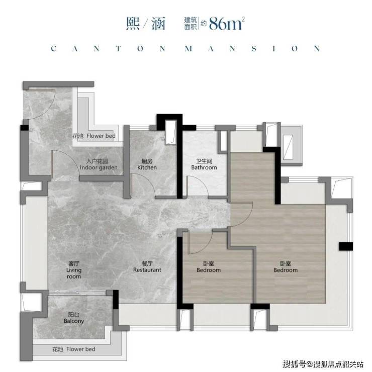 88㎡三房:四开间朝南设计,主卧配备270°飘窗,LDKG一体化布局,空间利用率高,采光和通风效果极佳。