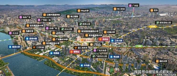 项目已确定对口广州市海珠区宝玉直实验星悦小学,并由宝玉直实验小学教育集团直接管理。初中阶段则属于摇号第三组,周边有广州市五中附属初级中学、江南外国语学校等九所学校环伺,形成了完善的区域教育体系。