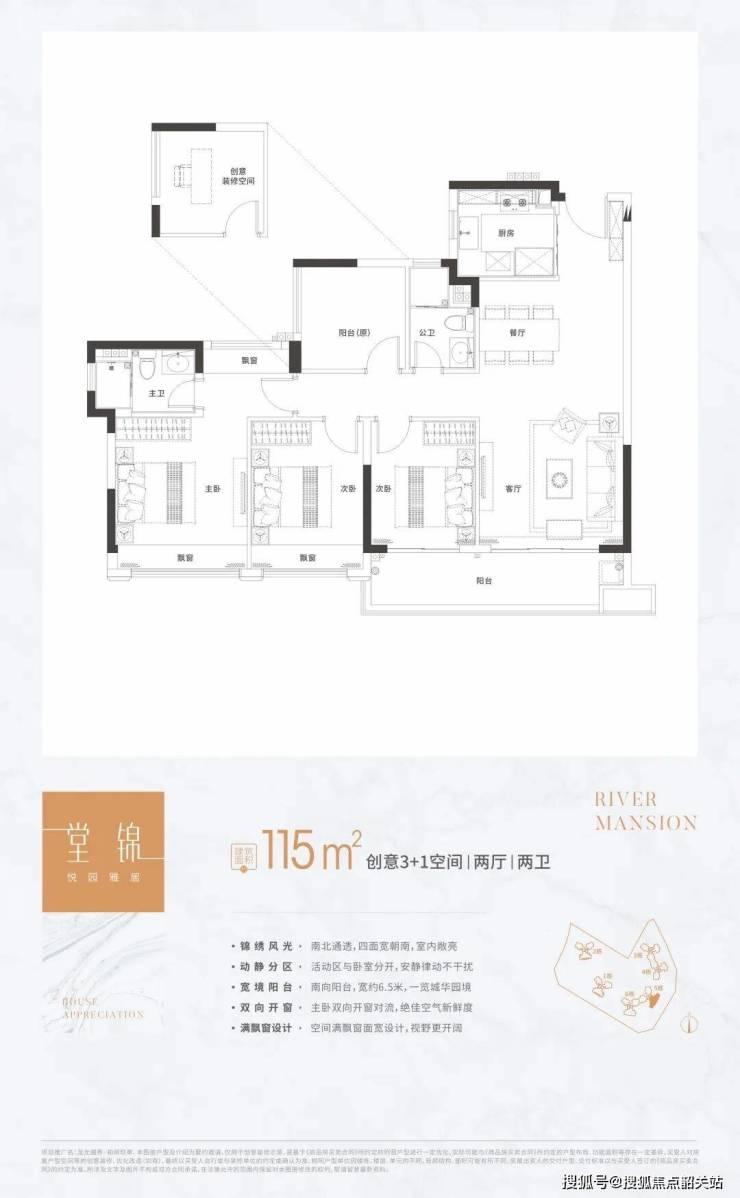 项目主力户型涵盖95㎡至143㎡,精准覆盖刚需改善到高端改善客群。其中,95㎡“城珍”户型以2+1房布局实现空间灵活延展;115㎡“堂锦”与“庭悦”两款3+1房,兼顾功能与舒适;125㎡“御园”及135㎡“江来”均为四房设计,适合多孩家庭;顶配143㎡“河图”五房,则面向追求极致江景与生活仪式感的塔尖人群。所有户型均强调观景视野,最长配备约7米观景阳台,部分单位可直面里水河一线江景,真正做到“户户瞰江、家家有景”。在寸土寸金的广佛交界地带,如此大尺度阳台与低密布局的结合,堪称稀缺。户型设计注重动静分区、南北通透,兼顾实用性与美学表达,充分回应现代家庭对“空间感”与“情绪价值”的双重诉求。