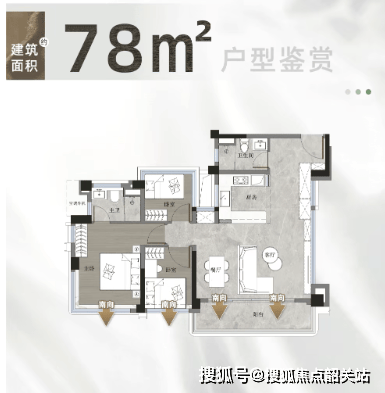 户型设计,是中建·未来方洲·二期最具市场辨识度的核心竞争力之一。二期主力产品为建面约78㎡、96㎡、122㎡三至四房,整体使用率约110%—120%,在同类新规产品中属于罕见水平。这种高使用率并非简单堆砌赠送面积,而是通过结构优化、尺度重构与功能整合实现。