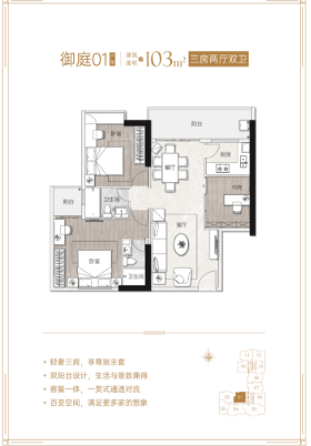 淘金半山豪庭·御庭打造适配全家庭结构的多元户型产品,空间设计遵循人性化宜居理念,格局方正规整、动线流畅合理,充分兼顾居住实用性与舒适度,精准满足三口之家、多代同堂等改善需求。主力户型采用全明通透设计,采光面宽阔,通风效果优异,客厅连接观景阳台,最大化延伸景观视野与空间尺度,推窗即揽半山绿意与城市繁华。主卧采用尊享套房设计,配备独立卫浴与观景飘窗,保障居住私密性与舒适度;次卧空间规整实用,可灵活改造为儿童房、老人房、书房或多功能室,适配家庭不同阶段的居住需求。厨房动线流畅科学,操作空间充足,满足日常烹饪需求;卫生间干湿分离设计,提升使用效率与整洁度。所有户型均充分考量老城改善人群的居住习惯,空间利用率高,功能分区完善,既保障居家私密性,又强化家庭成员互动性,以优质空间格局匹配主城芯高端居住定位,成为越秀改善置业的优选之作。