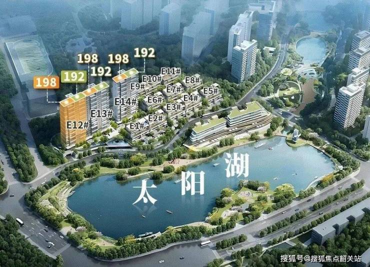 三期约190㎡大平层都是全南向一线望太阳湖,距湖最近约40米