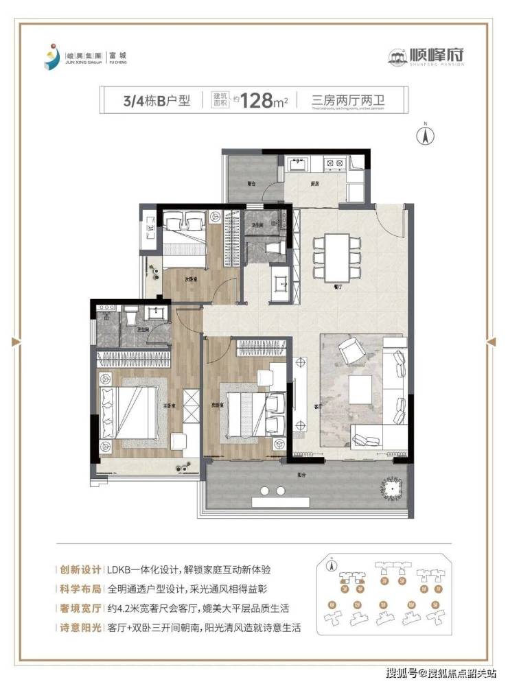 户型整体概况,覆盖多元需求:顺峰府当前在售户型涵盖建面约90㎡、128㎡、134㎡、178㎡四个面积段,户型设计均遵循“全明通透、动静分区、空间实用”的原则,采用LDKB一体化设计,适配新婚刚需、三口之家、三代同堂、三胎家庭等不同置业需求,得房率在78%-83%之间,高于区域同类楼盘平均水平,空间利用率高。