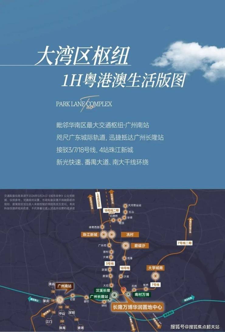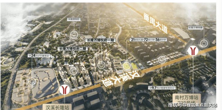 项目坐落汉溪大道、番禺大道两大城市主干道交汇处,多维立体交通路网全覆盖,快速通达全城各个核心片区。轨道交通方面,临近地铁 7 号线万博站,步行实测距离约 500 米,通勤时间约 6 分钟直达站点,7 号线串联佛山、番禺、海珠、荔湾,快速接驳珠江新城、广州南站核心枢纽;同时接驳 18 号线、22 号线远期规划线路,半小时直达珠江新城 CBD、广州南站、白云新城等城市核心。城市快速路网方面,南大干线纵横东西,新光快速、华南快速南北贯通,自驾 10 分钟抵达广州南站,20 分钟直达珠江新城,30 分钟覆盖广州主城核心商圈。片区打造 180 万方地下超级环形路网,搭配北斗导航智能停车系统,彻底解决片区拥堵、停车迷路难题,日常出行高效顺畅。公交路线密集排布,多条公交线路环绕项目周边,短途出行便捷无忧。高铁枢纽加持,广州南站半小时通达粤港澳大湾区各大城市,城际往来高效便捷,跨城通勤、节假日出行毫无压力。多维地铁 + 城市快速路 + 城际高铁 + 地下环形路网,四位一体交通体系,全方位缩短时空距离,无论市内通勤、跨城出行、周末出游都极度便捷,真正做到半小时广州生活圈,一小时大湾区生活圈,极致交通红利全方位赋能项目居住价值与流通价值。
