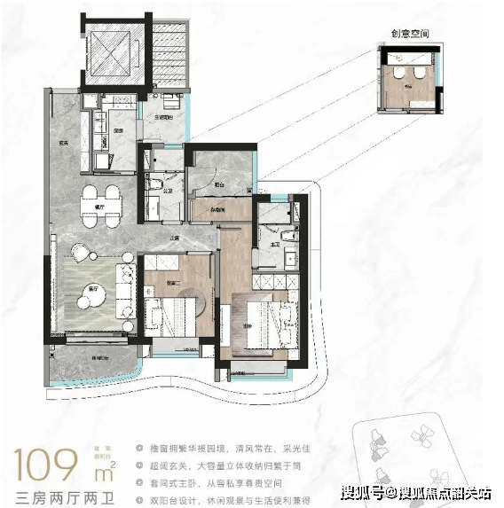 以 161㎡户型为例,该户型采用双主套的五房设计,进门处设有一个卫生间,方便实用。客厅格局十分大气,休闲办公区、270° 江景客厅、阳台形成的大方厅,即使不出家门,也能随时欣赏开阔江景。房间内装修精致,空间利用合理,充分考虑了居住的舒适性与实用性。而 109㎡的户型,虽然面积相对较小,但布局紧凑,动静分区明显,同样能为业主提供舒适的居住体验。无论是新婚夫妇、三口之家,还是三代同堂的大家庭,都能在这里找到适合自己的理想户型。
