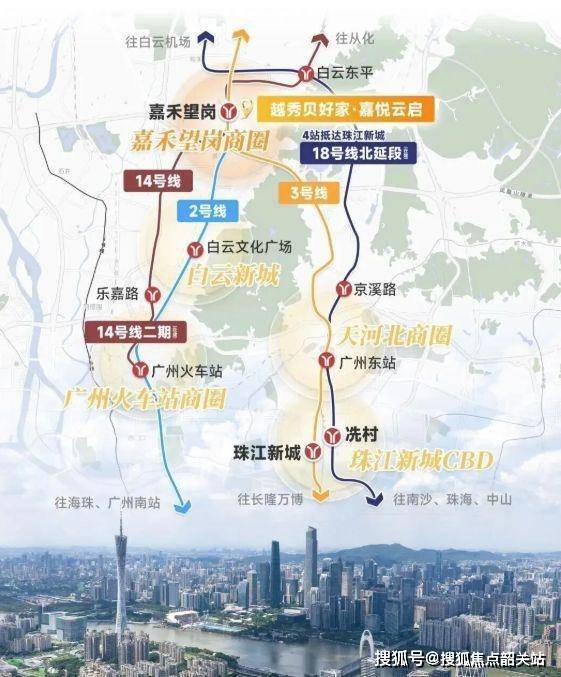 嘉禾望岗在白云区乃至广州的地位举足轻重,被视为白云的中心坐标。从交通枢纽地位来看,它是广州为数不多的三轨交汇枢纽,日均客流超 32 万人次,接驳 3 号线与 2 号线两条城市大动脉,十年间客流增速领跑全市地铁站。其通达性极强,可 0 换乘联通广州四大超级枢纽及八大核心商圈。还是陆空联运枢纽,服务于 “北优” 战略。越秀在此拿地开发,无疑是抢占了白云核心板块的优质资源,项目未来潜力巨大,无论是自住还是投资都极具吸引力。