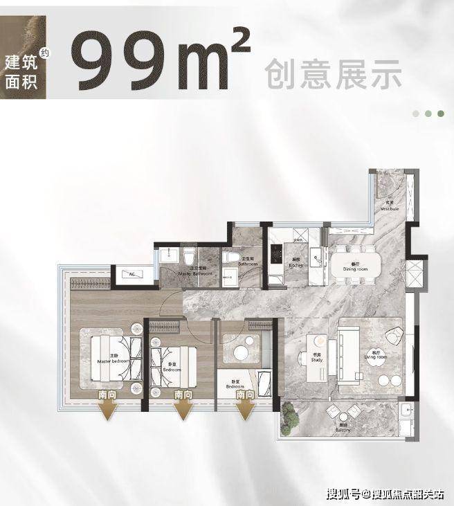 项目全盘 4 栋楼,530 户,均为 27 - 37F 高层,产品面积段为建面约 83 - 126㎡,全南向四至五空间。建面约 83㎡南向三房两卫,单边位使得套内空间更大,且相比之前新规户型有升级,次卧尺度佳可三边下床。99 平四房两卫,拥有 IMAX 宽景阳台、主卧三面环幕视野,3 + 1 房设计可打造 “超聚厅”。建面约 109㎡四房南北对流,两个次卧空间大,4.5 开间朝南,双面宽大阳台,玄关有 800 库空间。建面约 126㎡五房两卫,5.5 开间朝南,四间卧室朝南,南北对流,双面宽大阳台,同样有 800 库玄关,舒适度与功能性兼备。