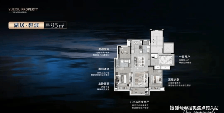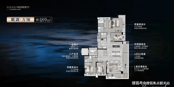 越秀·御湖台的产品力,在户型设计上体现得淋漓尽致。项目全线采用佛山罕见的“一层两户”布局,电梯直接入户,私密性与尊崇感拉满。主力户型涵盖95㎡三房至285㎡大平层,均以“瞰湖”为核心动线。以建面约143㎡四房为例,LDK一体化设计打通客厅、餐厅与厨房,搭配约8米宽景阳台,直面博爱湖270°视野;主卧套房配置独立衣帽间与景观飘窗,清晨推窗即见湖光潋滟。而285㎡顶层产品更引入双主卧、中西双厨、家政间等高端配置,契合塔尖人群对空间仪式感的需求。值得一提的是,所有户型均采用大面宽、短进深格局,确保90%以上房间朝南或瞰湖,采光与景观兼得。这不是简单的房子,而是为湖而生的生活容器。