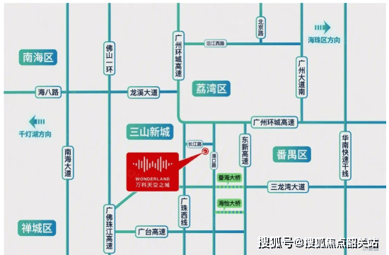 自驾:五横三纵路网,海怡大桥、番海大桥等跨江通道连接广佛,30分钟直达广钢新城。
