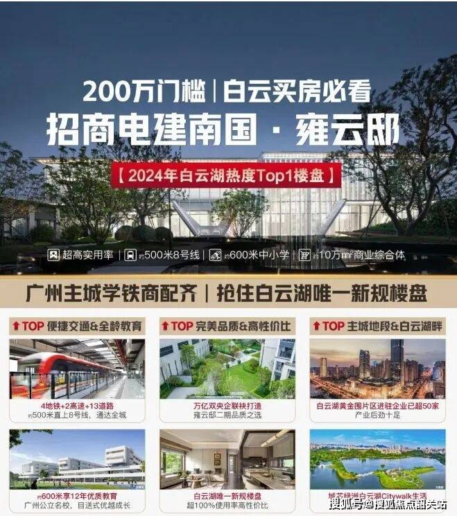招商电建南国雍云邸位于白云湖数字科技城黄金围片区,由招商蛇口、南国置业与弘阳地产联合开发,主打高性价比改善型住宅。项目距离地铁8号线滘心站D出口约650米,步行8–10分钟可达;主推二期78㎡三房与89㎡四房,使用率均超105%,实现“同等面积多一房”的空间效率。教育方面对口培英教育集团管理的九年一贯制公办中小学(54班),小区内配建15班幼儿园,形成0–15岁教育闭环。当前项目提供包括专属购房礼包、灵活选房权益在内的多项支持政策,在白云湖板块中以低于区域成本价的定价策略,为刚需及首次改善家庭提供务实选择。