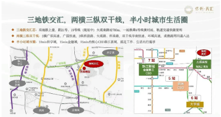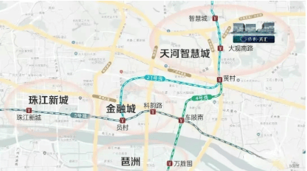 项目距离 21 号线大观南路站约 1.2 公里,步行大约需要 15 分钟,若借助小电车接驳则更为便捷。通过地铁,一站即可换乘 4 号线,方便前往金融城、琶洲等地;4 站到达员村后可换乘 5 号线,直达珠江新城,轻松畅达城市核心区域,且去往城区中心的时间基本能控制在 1 小时以内。