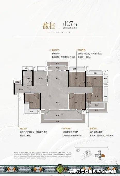 ▶ 建面约168㎡奢阔大四房:双主卧配置,约8.5米景观阳台直面白云山,U型厨房连接生活阳台,配备方太智能厨电、汉斯格雅卫浴等国际一线品牌,适合改善型客户一步到位。