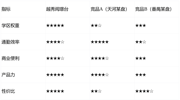 2025年广州第三次土拍中,天河区宅地成交楼面价达6.8万元/㎡,溢价率25%,领跑全市。越秀阅璟台所在板块,近3年仅出让2宗宅地,稀缺性凸显。对比周边: