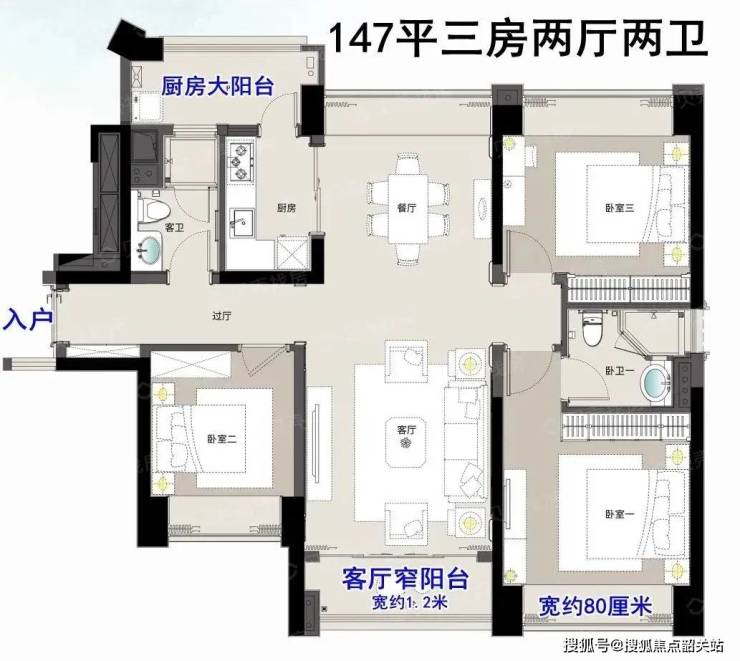 主推的130平方米和147平方米户型,均为精致的三房设计。这两个户型延续了星河湾经典的“大平层”理念,拥有双阳台、大飘窗以及全南向的布局。南北通透的格局,使得室内空气对流顺畅,四季如春。宽敞的餐客厅一体化设计,将厨房、餐厅、客厅、阳台融为一体,形成了一个巨大的公共活动区域,非常适合家庭聚会、亲子互动。虽然面积段相对紧凑,但在功能分区上却毫不含糊,每个房间都做到了方正实用,采光面极佳。