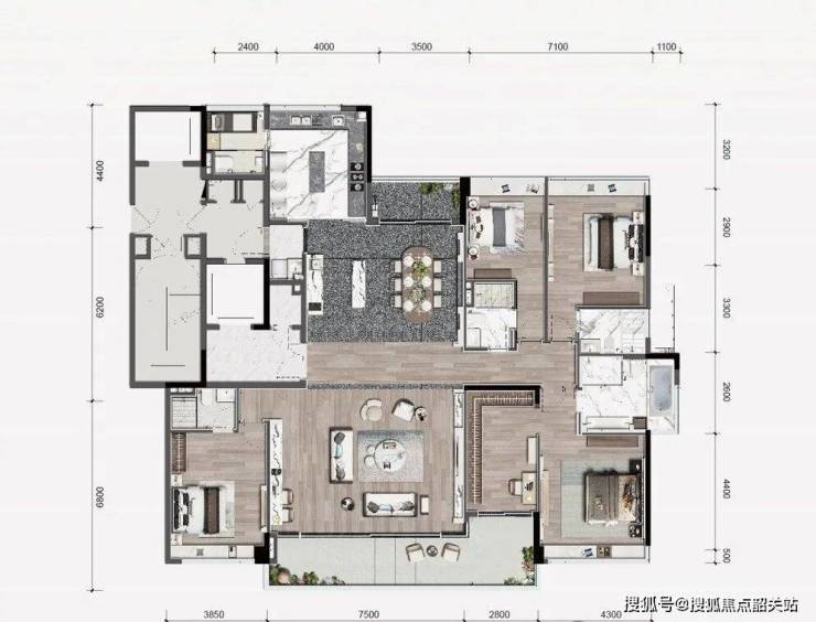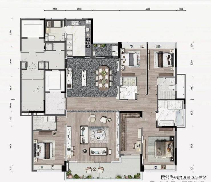 小区整体抬高了7米,并向道路方向退让15米,既保证了每户的视野开阔,也提升了社区私密性。17栋6–11层的小高层错落排布,容积率仅2.0,总户数315户,密度不高。建筑外立面采用东方美学风格,线条简洁但有层次感,搭配大面积落地窗,在山林背景中显得沉稳又不失现代感。