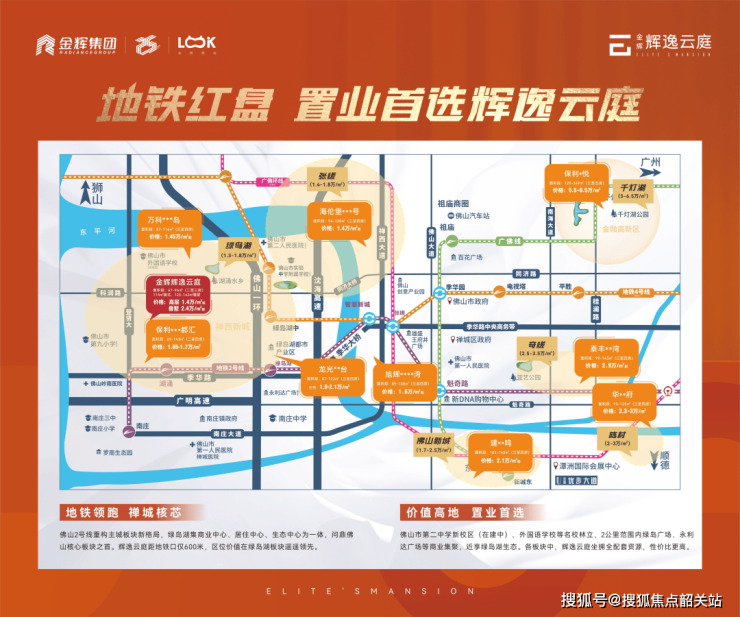 金辉辉逸云庭位于佛山禅城区季华路发展轴与紫洞路交汇处,地理位置优越,交通网络四通八达。项目距离已通车的佛山地铁2号线湖涌站约600米,步行即可抵达,乘坐地铁可快速直达广州南站,并可换乘广佛线、广佛环线等线路,实现广佛双城无缝通勤。地铁7号线规划中,将进一步提升区域交通能级。自驾方面,项目靠近佛山一环、季华路、广佛高速等主干道,15分钟内即可抵达祖庙、千灯湖、佛山新城等核心板块。凭借地铁+主干道双维交通体系,金辉辉逸云庭不仅满足本地通勤需求,也为跨城生活提供便利条件,是广佛同城置业的优选之地。