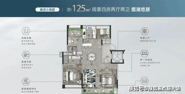 1栋、2栋、4栋:超高层产品,95㎡、125㎡、141㎡等多种户型,3梯4户或6户设计,适合注重性价比与景观视野的家庭;