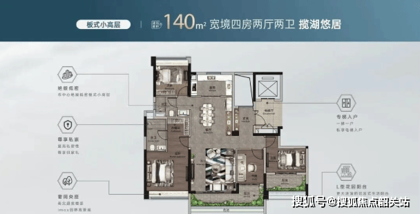 141㎡四房:大面宽、多阳台,满足三代同堂的高品质生活;